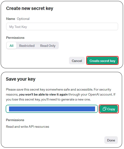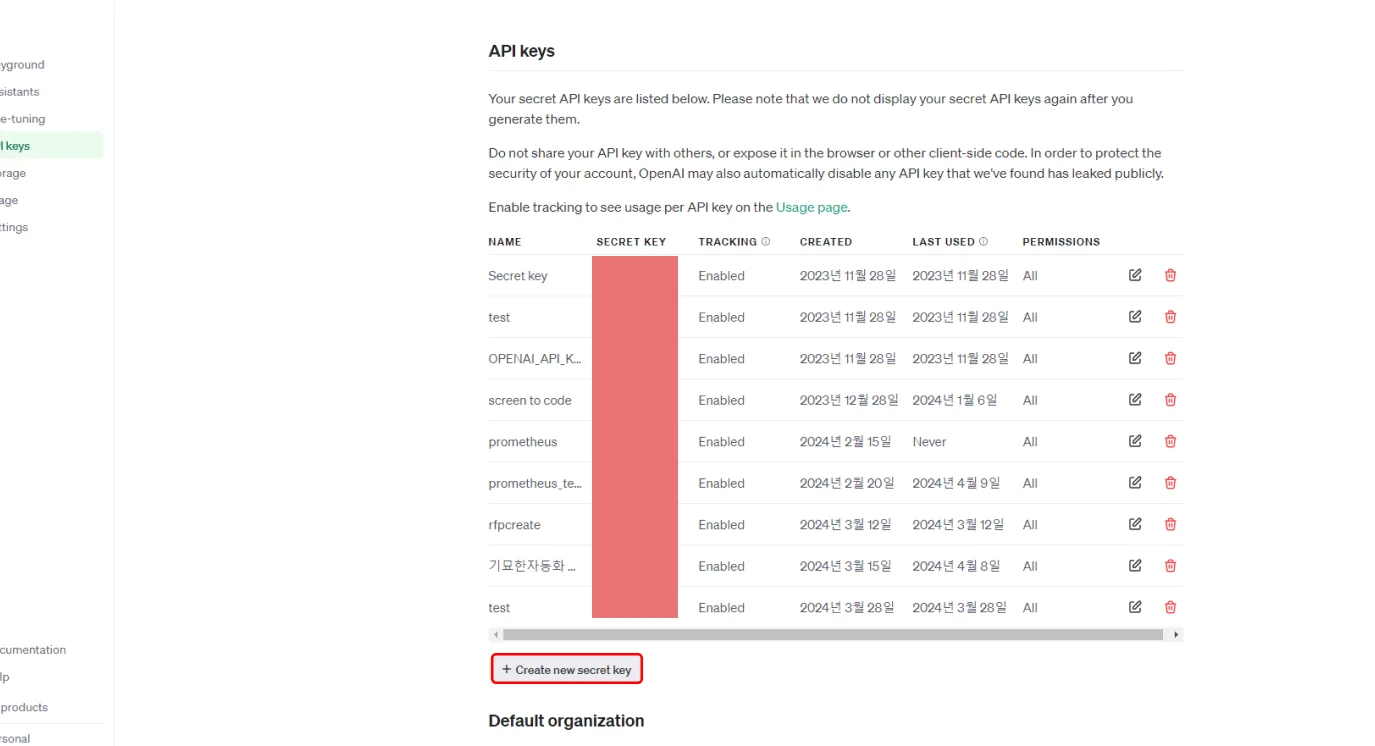 - GPTs API SECRET KEY발급